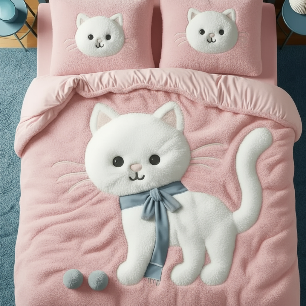 🌸 ست روتختی ببعی طرح گربه پشمالو