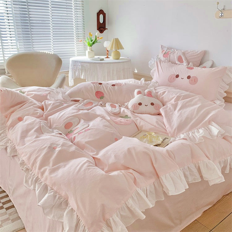 سرویس روتختی طرح خرگوش تمام تیکه دوزی برجسته و سه بعدی بسیار لوکس تمام نخ بدون پلی استر مناسب پوست حساس موجود در سایزنوزادی،یک نفره،یک و نیم نفره،دو نفره