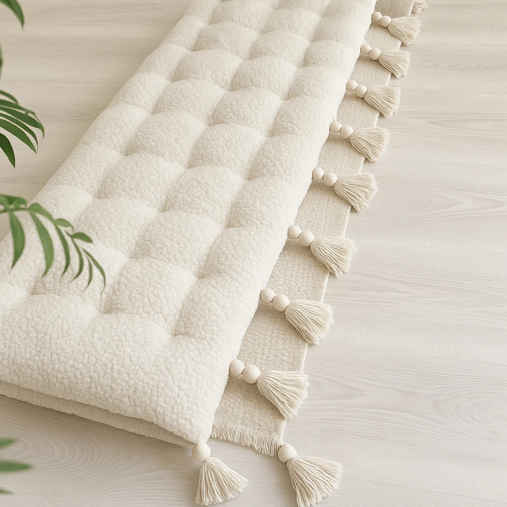 کامپر و تشکچه مبل جنس تدی منگوله دار مناسب مبل سه نفره؛دو نفره و تک نفره