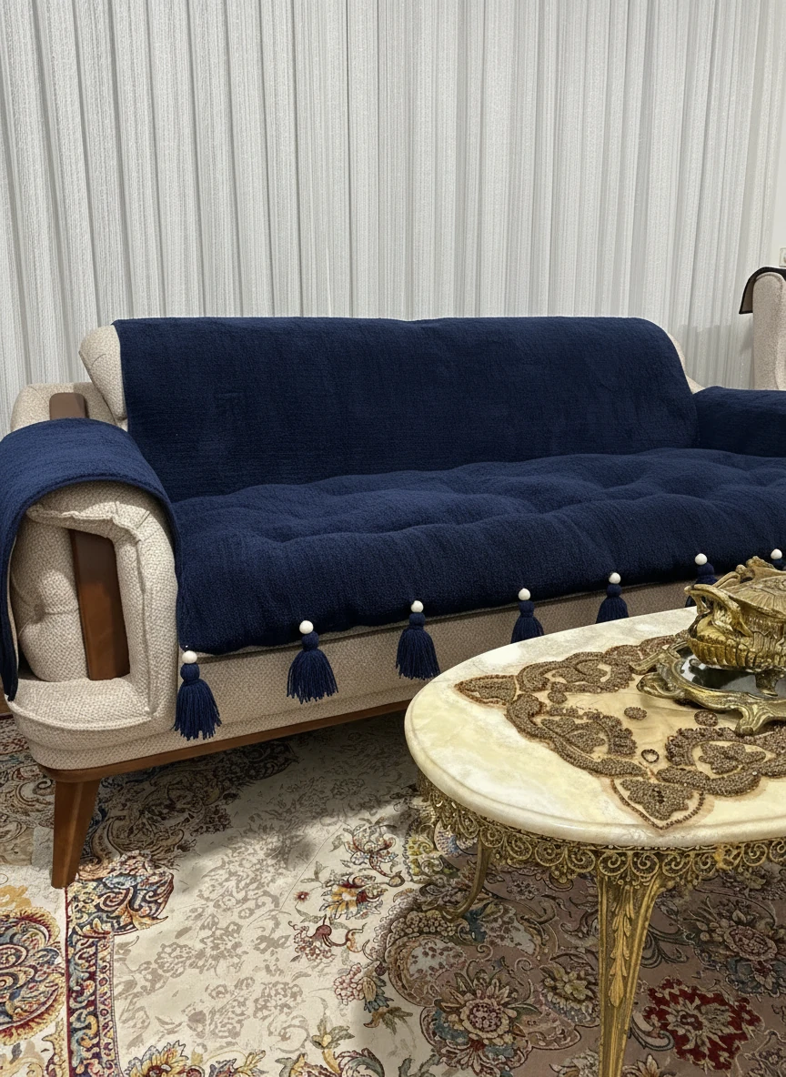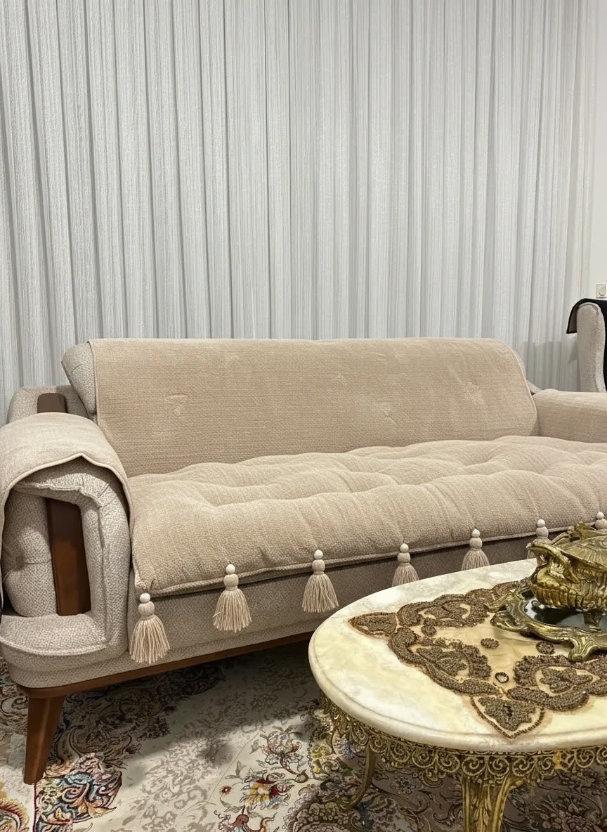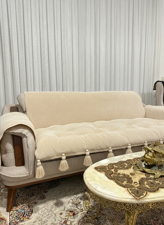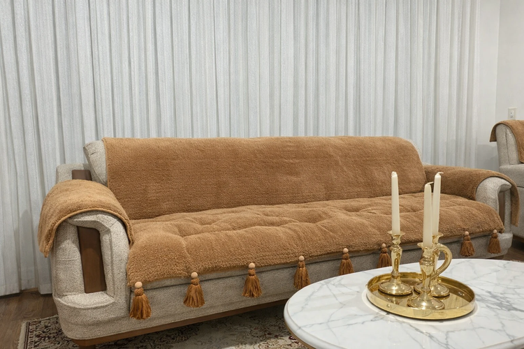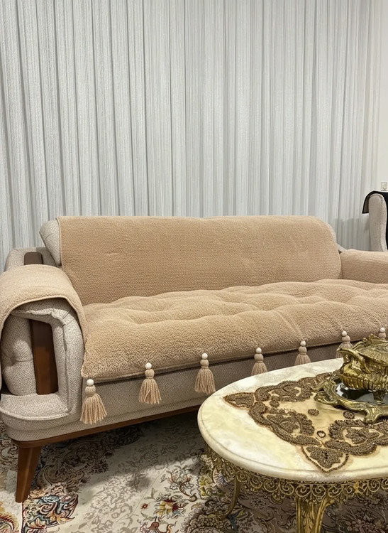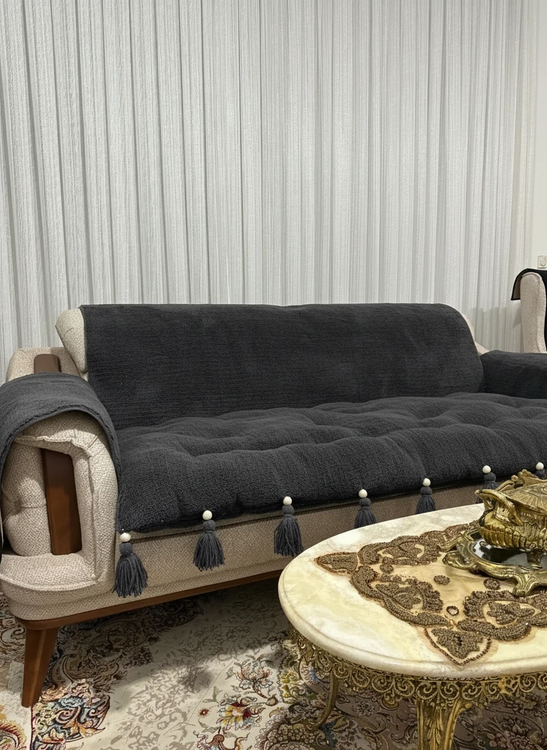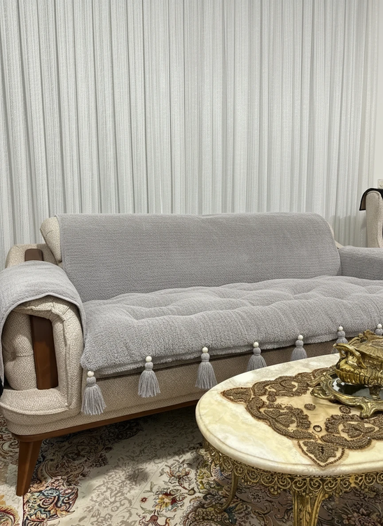 کاور و روکش ضد اب مبل به همراه تشکچه نشیمن جنس تدی مدل منگوله دار مناسب برای هر تعداد و مدل مبل