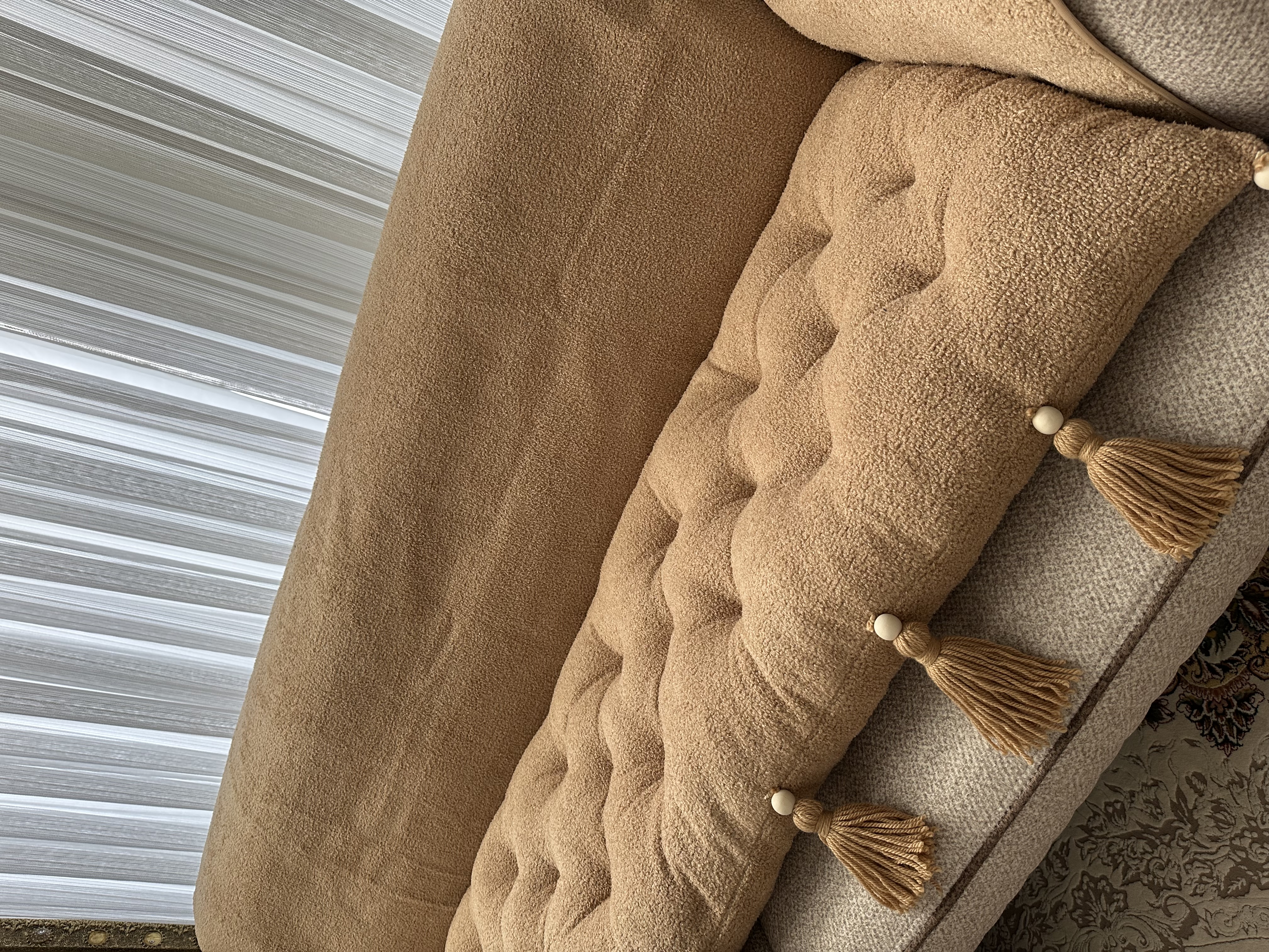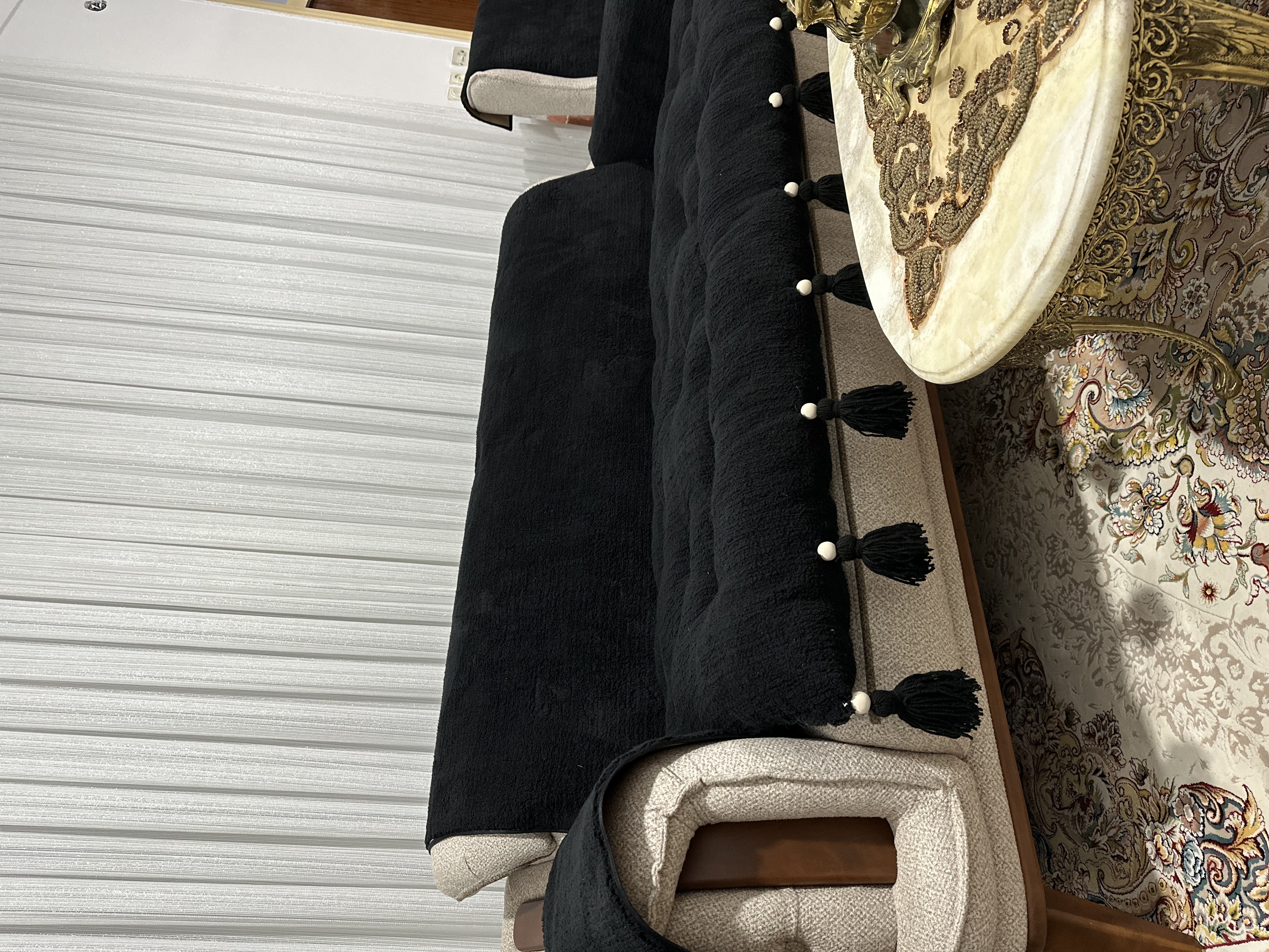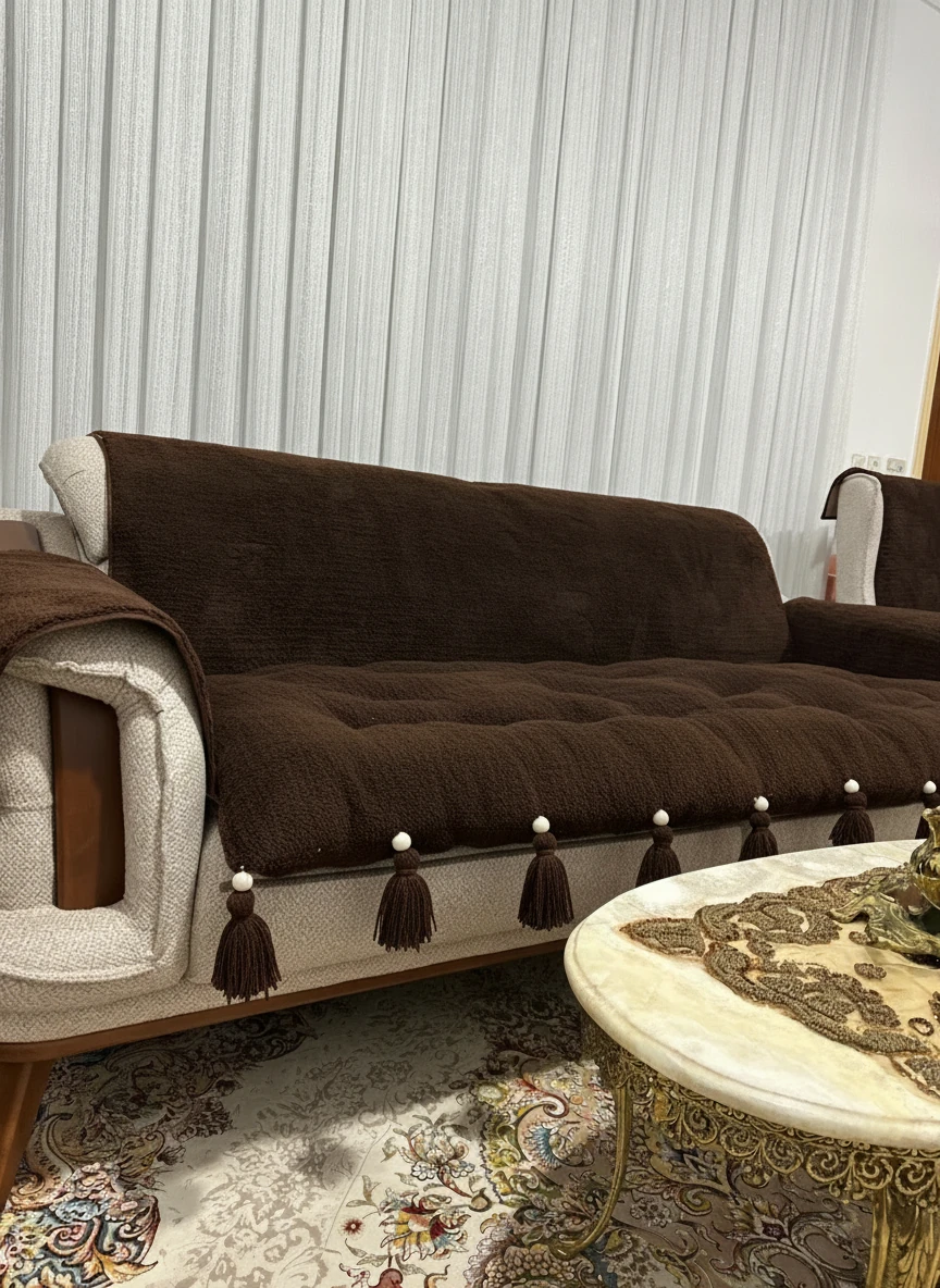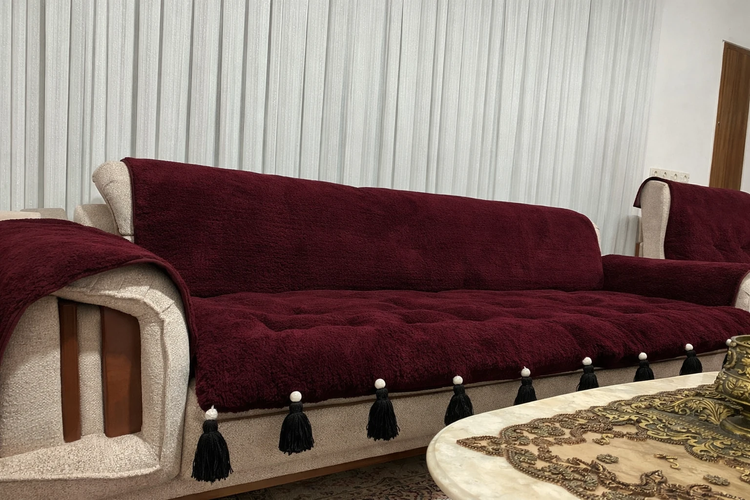 کاور و روکش ضد اب مبل به همراه تشکچه نشیمن جنس تدی مدل منگوله دار مناسب برای هر تعداد و مدل مبل