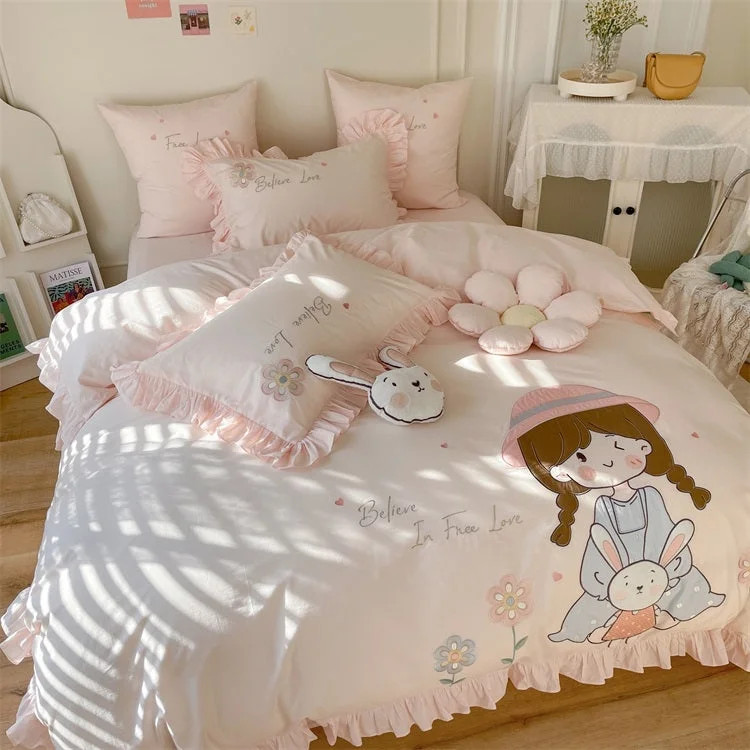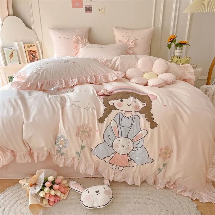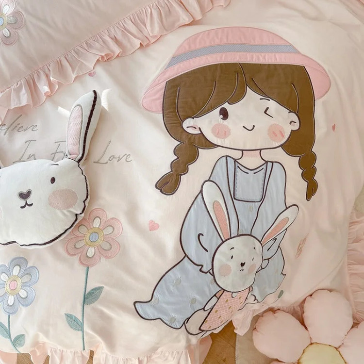 سرویس روتختی 7 تکه کودک و نوجوان تمام نخ مدل دختر مهربون سهبعدی تکهدوزی سایز نوزاد تا دو نفره