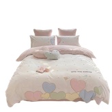 سرویس روتختی 7 تکه کودک و نوجوان تمام نخ طرح قلب با تکه دوزی برجسته سایز نوزاد تا دو نفره