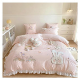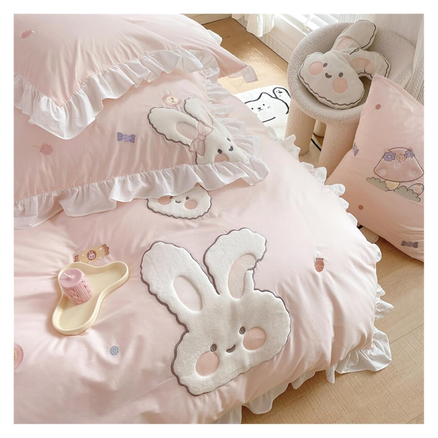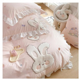 سرویس روتختی 7 تکه کودک و نوجوان تمام نخ طرح خرگوش سهبعدی تکهدوزی سایز نوزاد تا دو نفره