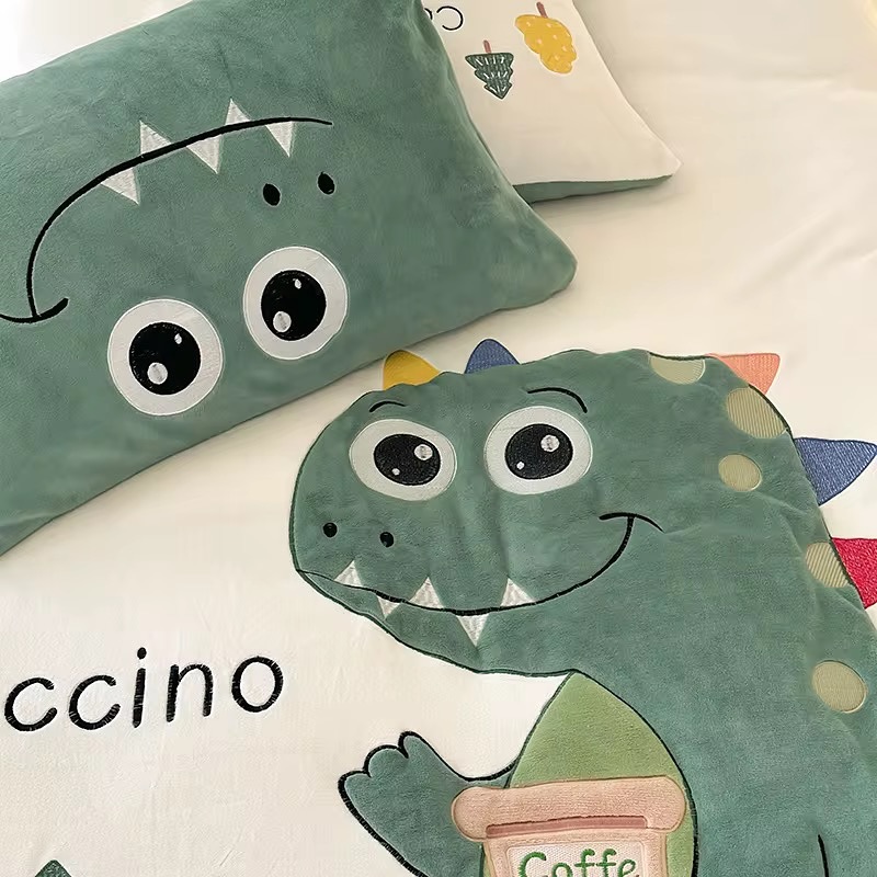 سرویس روتختی دایناسور تمام تکه دوزی برجسته سه بعدی مخمل کالیفرنیا ۶تیکه مناسب از سایز دو نفره تا نوزادی