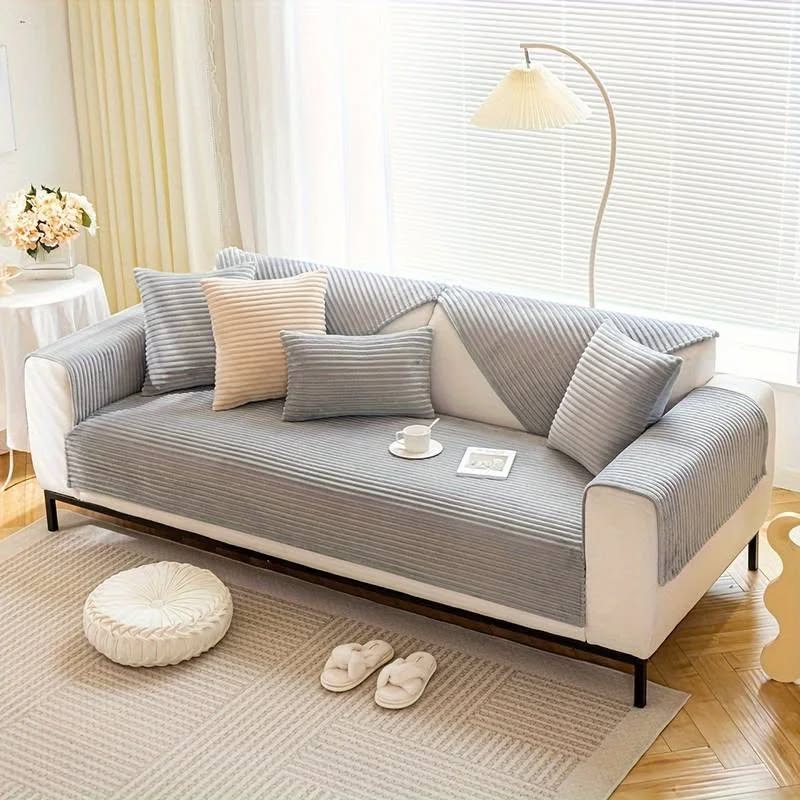 Waterproof and stain-resistant decorative sofa cover with anti-slip layer; strong protection for an 8-seater sofa with durable and stylish stitching design.”